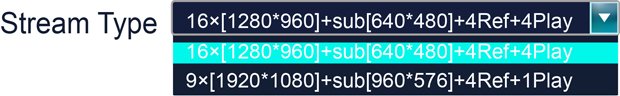 Dual Stream | Each channel can set main stream and sub stream | |