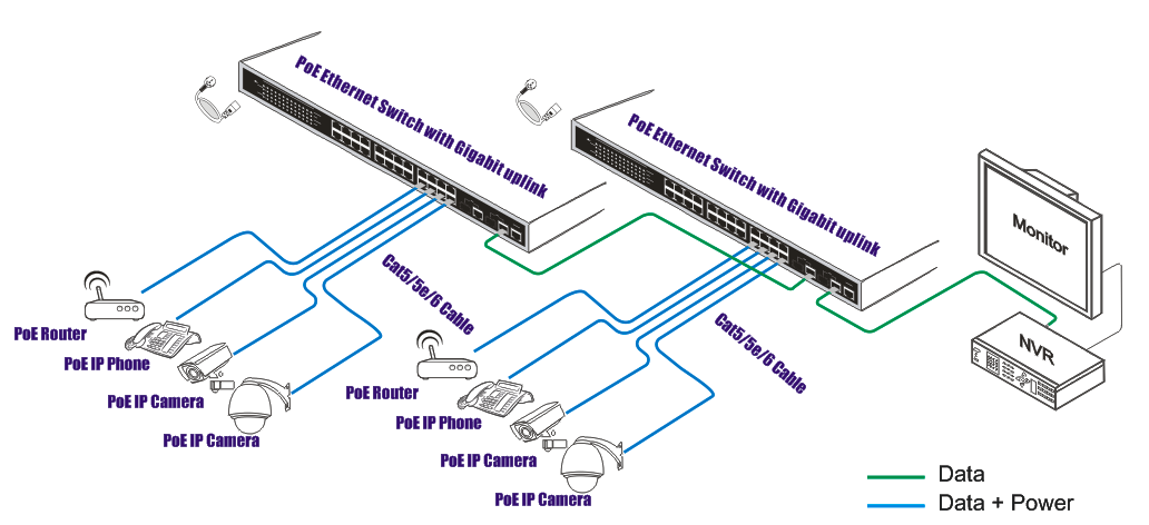 • Provides 4 or 8 PoE Port, each port output 30W max power