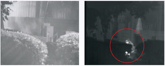 Common IPC cannot see object under fog Thermal IPC could see object through fog